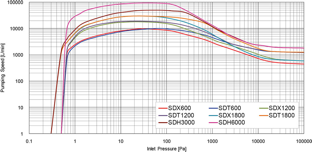 | Max. pumping speed [L/min] *1 *4 | 10,000 | 18,000 | 19,000 | 30,000 | 50,000 | 100,000 | ||